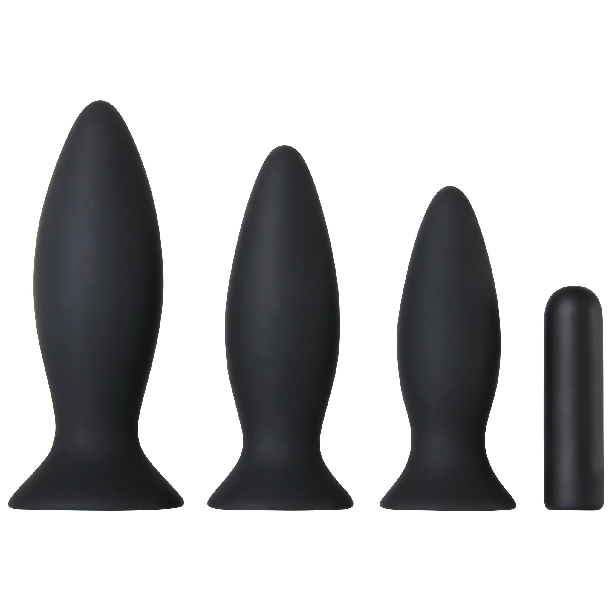 Fulfill your anal fantasies with powerful, rechargeable vibrations and silicone plugs in 3 sexy sizes: small, medium, and large. Each plug is super-smooth and flexible with a safety base for total comfort. A removable and fully rechargeable bullet vibrator slips into the base, transforming it instantly into a vibrating powerhouse. Enjoy all 9 intense speeds and functions in the perfect size plug for guaranteed total anal bliss. Great for anal training!