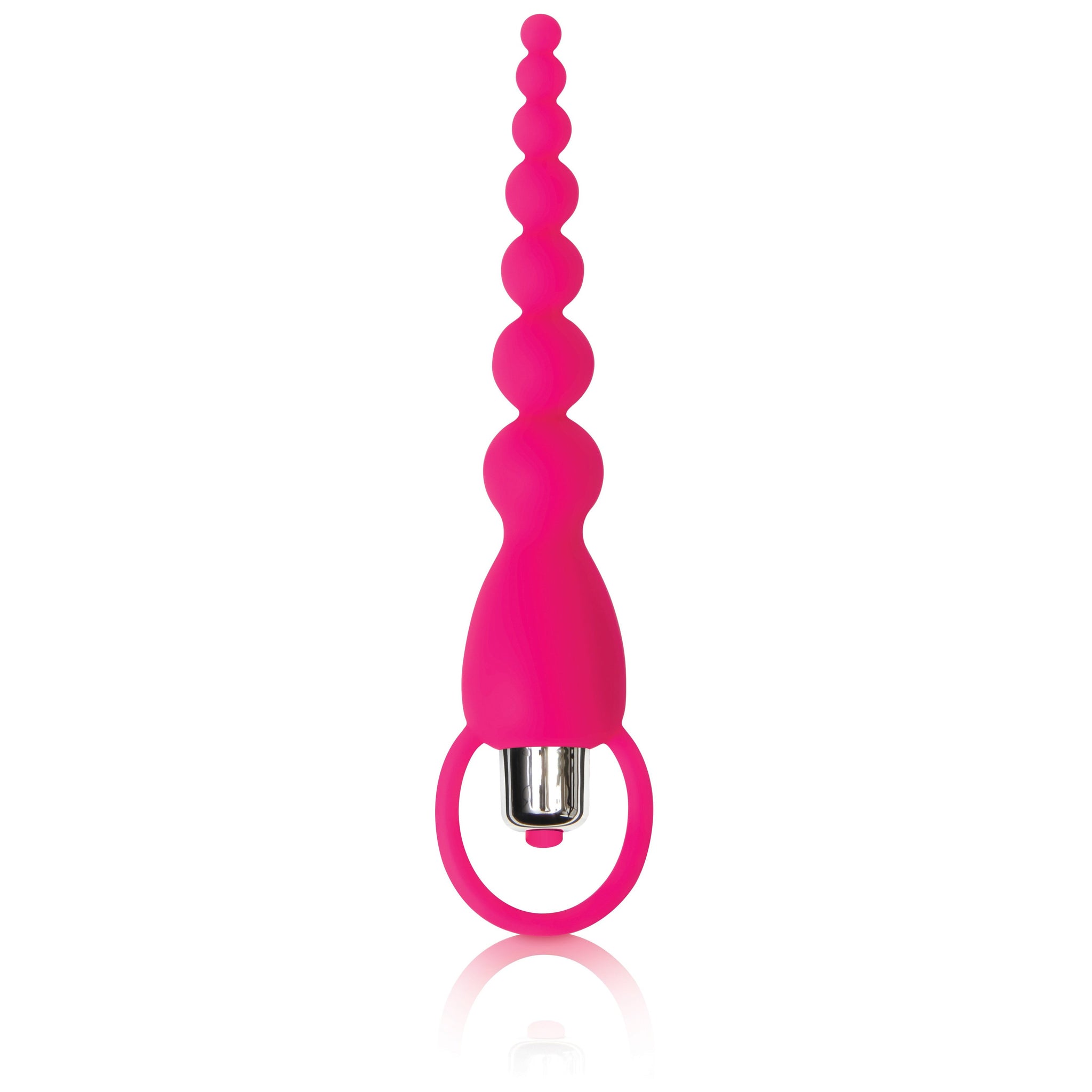 Discover the joys of vibrating anal pleasure the easy way: one bead at a time! Just add your favorite water-based lube and start with the 1/4" wide tip. As you go deeper, the graduated beads increase in size so you can test your limits and train your way to booty bliss. Fire up the removable bullet and shake your caboose with 7 intense vibration functions.