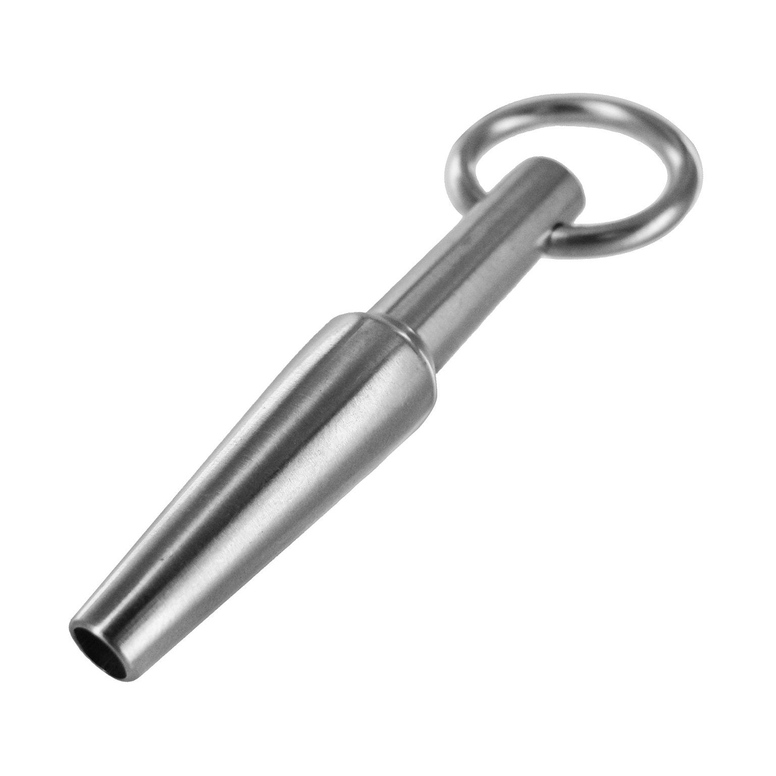 Want a Prince Albert piercing minus permanence? The Lacuna Penis Jewel gives you the pierced look minus the piercing! Made from high quality stainless steel, this urethral toy is non-porous and easy to sterilize. The hollow-core design is engineered to allow for ease of use and allows use to ejaculate through the while wearing it.