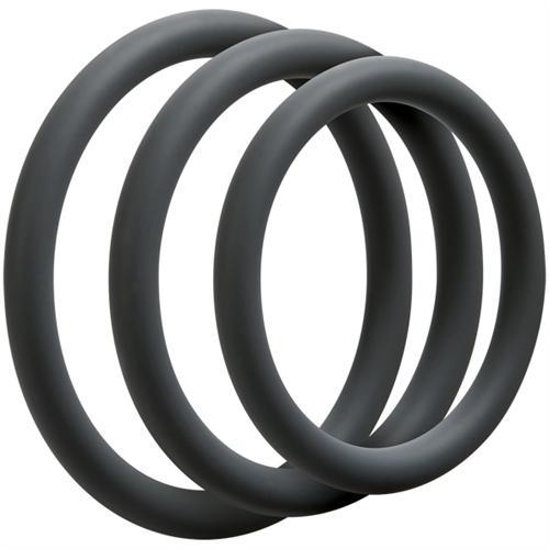 Optimize your experience with these silicone cock rings. The Optimale Thin C-Ring Set offers enhanced size and girth with three rings in 40mm 45mm and 50mm diameters. These rings are ultra stretchable for easy use around the shaft or testicles maintaining those long-lasting erections you have always dreamed of and prolonging your ejaculation.