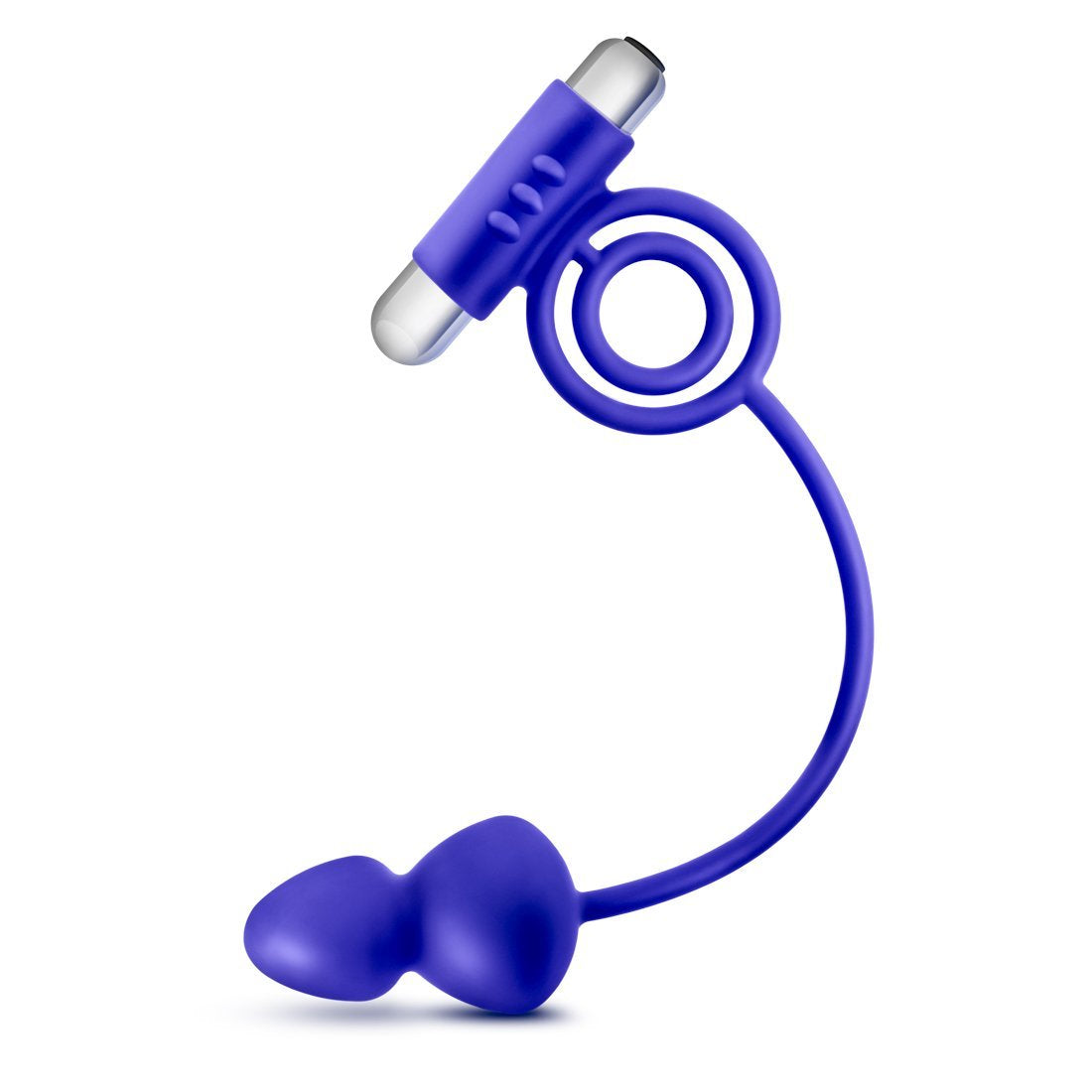 Performance Penetrator Anal Plug With Vibrating Cock Rings - Indigo