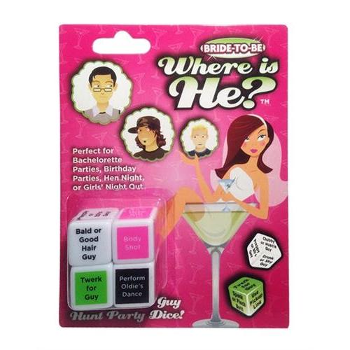 Forget about looking for Mr. Right, this dice game is all about looking for Mr. Right now! From ridiculous to outrageous, Bride-To-Be Where Is He? will provide countless hours of side-splitting entertainment.