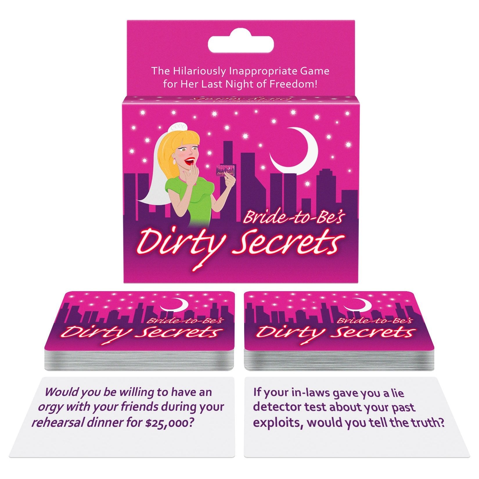 Players attempt to guess the Bride-to-Be's answers to shocking questions, and earn points when correct. Or, Bride-to-Be's Dirty Secrets can be played as a drinking game where players drink when incorrectly guessing the Bride-to-Be's answers.