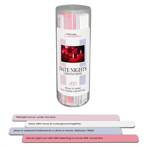 100 ways to keep your dates interesting. Whenever you need a date night idea select an idea stick. Read both sides of the stick with your significant other and choose the one you wish to carry out.