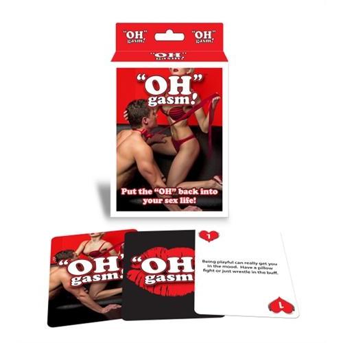 Put the OH! back into your sex life. The object of Oh-gasm is to assemble a winning combination of card in either 3-of-a-kind, 4-of-a-kind, or a straight. Once assembled, you must draw an Oh-gasm card to be able to take advantage of the different activities.