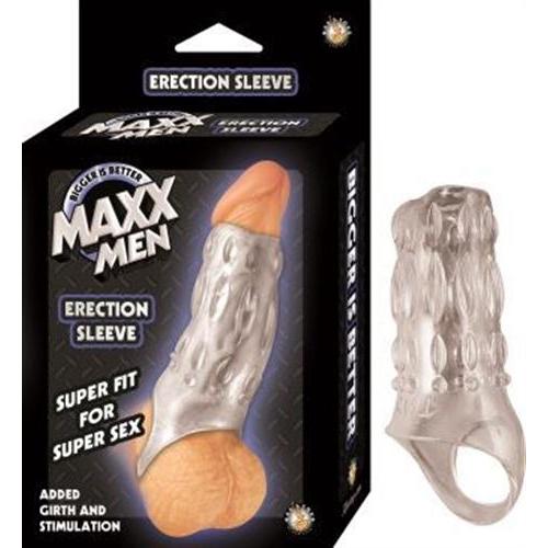 Maxx Men's Erection Sleeve is SuperFit for SuperSex! This erection sleeve gives added girth and stimulation while holding your balls tight. Ribbed for extra pl easure. Bigger is Better!