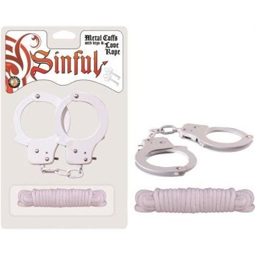 Sinful Metal Cuffs With Keys & - Love Rope - White